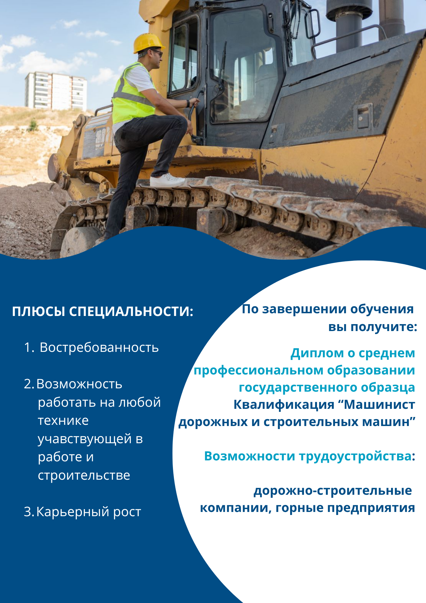 - Машинист бульдозера (4-8 разряд);