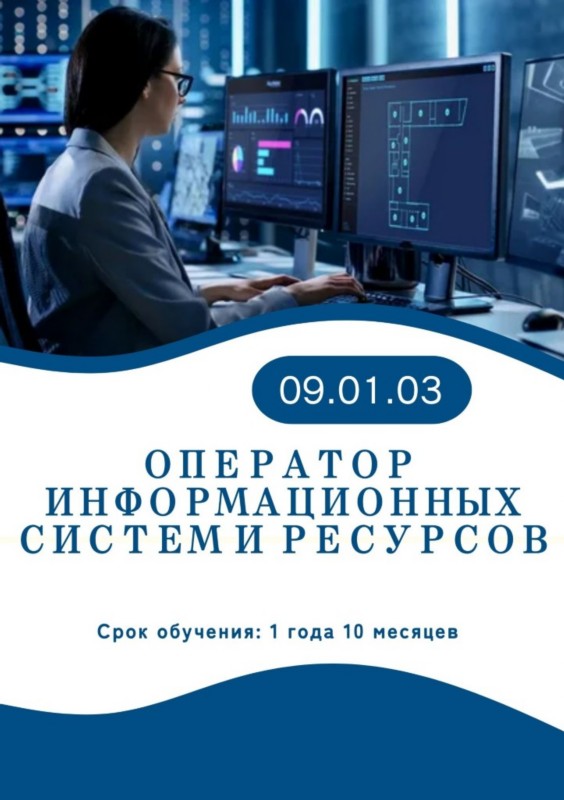 23.01.06 Машинист дорожных и строительных машин (юноши) 23.01.17 Мастер по ремонту и обслуживанию автомобилей 09.01.03 Оператор информационных систем и ресурсов