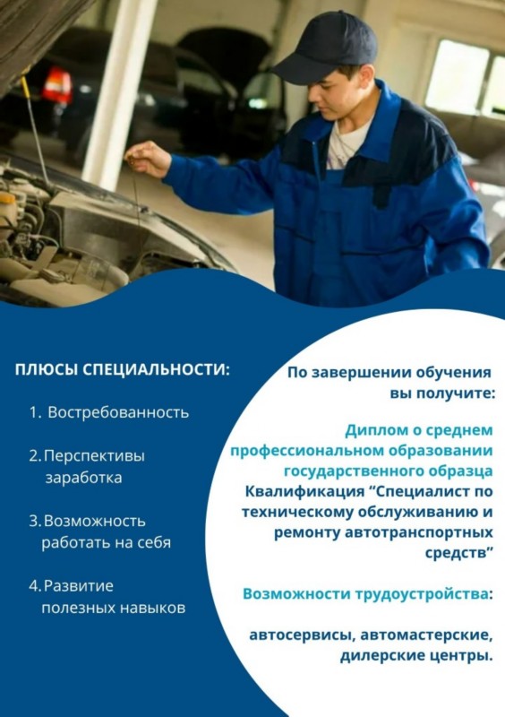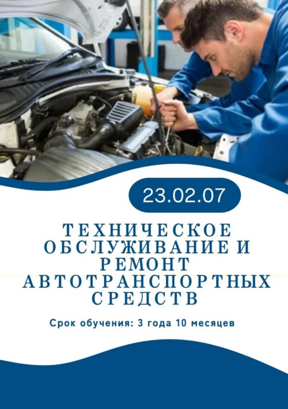 23.02.07 Техническое обслуживание и ремонт автотранспортных средств;